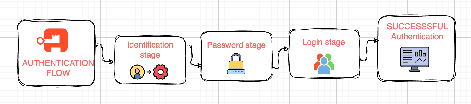 For example a standard login flow would consist of the following stages: